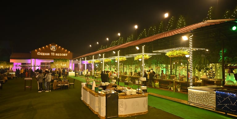 Ocean 11 Resort is conveniently located in Gorakhpur, Uttar Pradesh, making it the perfect venue for weddings and corporate events.